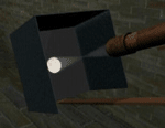 Galileo darkens the room and aims the telescope at the Sun. At about one meter from the eyepiece, he places a sheet of white paper. The solar disk is thus projected on the sheet. To heighten the contrast of the image and thus make it easier to observe, Galileo places a darkening screen around the sheet. He now draws a circle on the sheet with the compasses and, moving the sheet closer or farther away, he finds the position where the Sun's image exactly overlaps the circle. He then marks the sunspots on the sheet. Since the Sun moves, the helioscope itself must be moved continuously in order to keep the solar image in the circle.