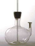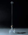 egg-sized glass with a long neck. The jar is heated with the hands and